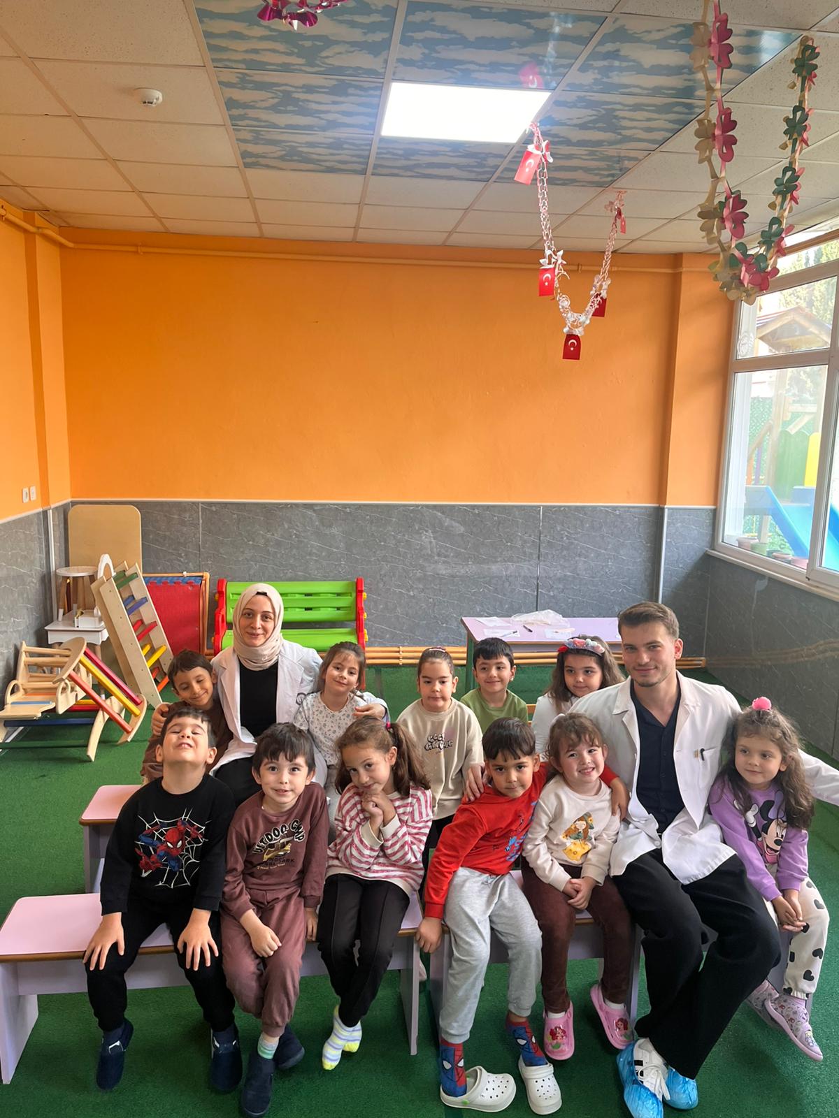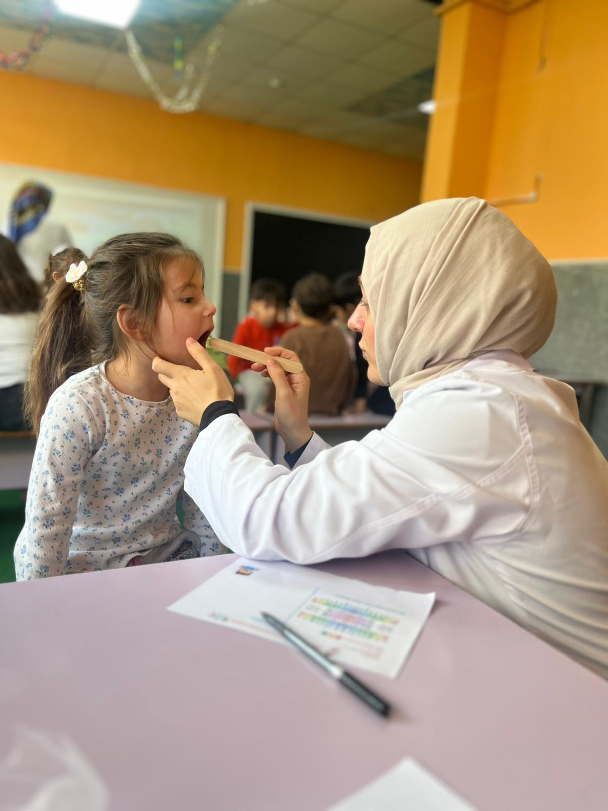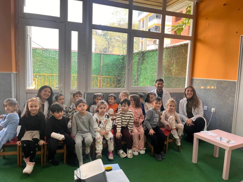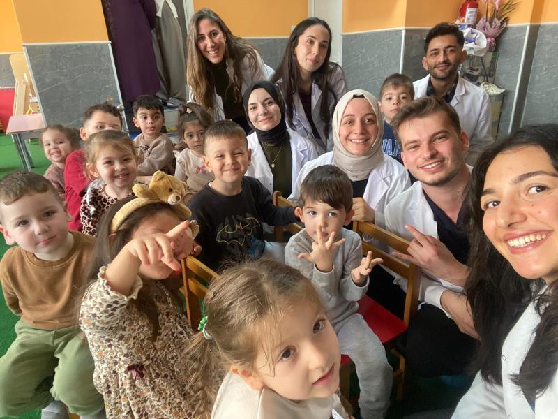 Etkinlik sırasında öğrencilerin ağız hijyeni durumları değerlendirildi; diş fırçalama alışkanlıkları, sağlıklı beslenmenin önemi ve koruyucu diş hekimliği uygulamaları hakkında bilgilendirmeler yapıldı. Çocuklara erken yaşta ağız ve diş sağlığı bilinci kazandırmayı amaçlayan bu çalışma, hem eğitici hem de keyifli bir atmosferde tamamlandı.