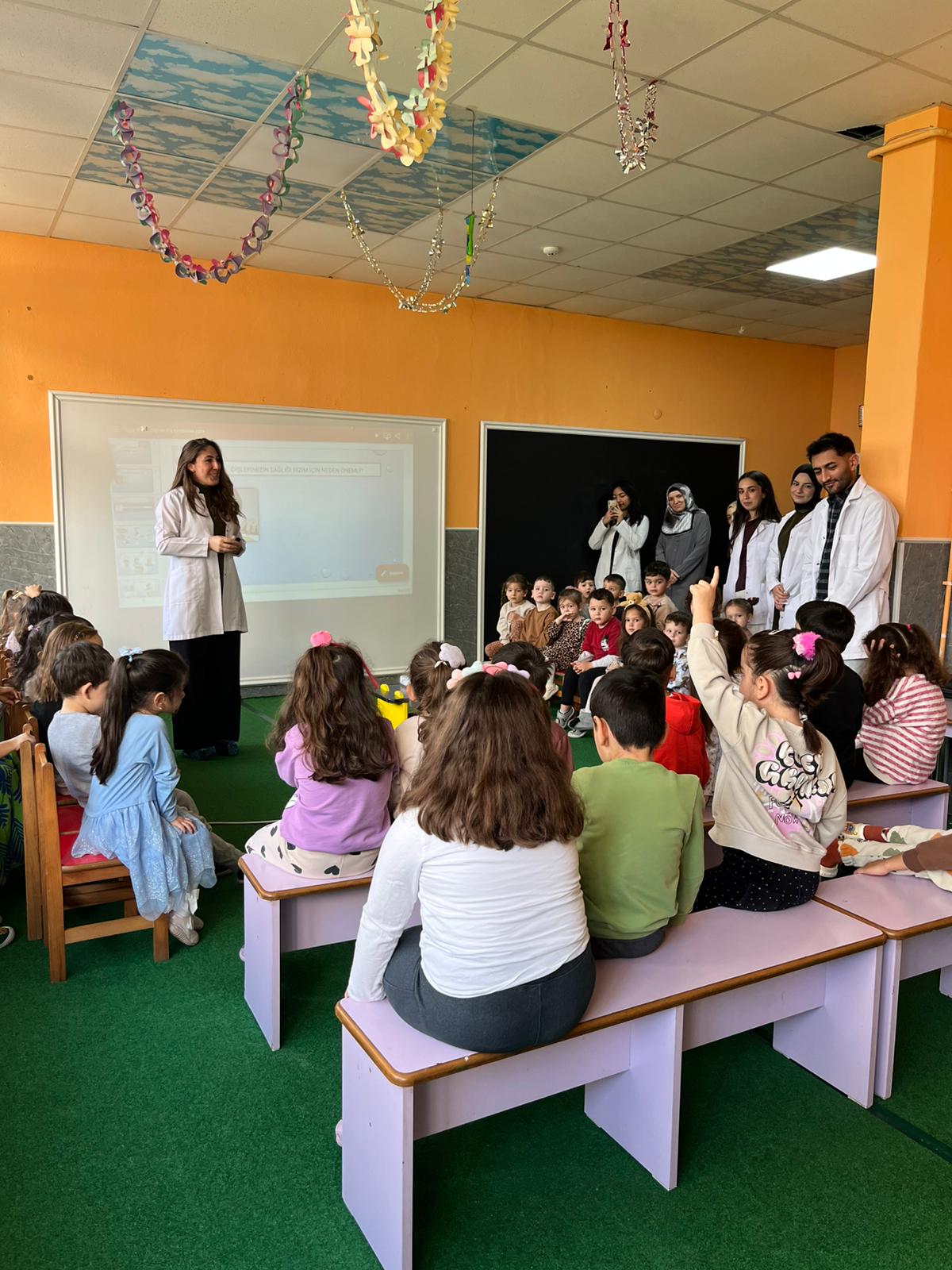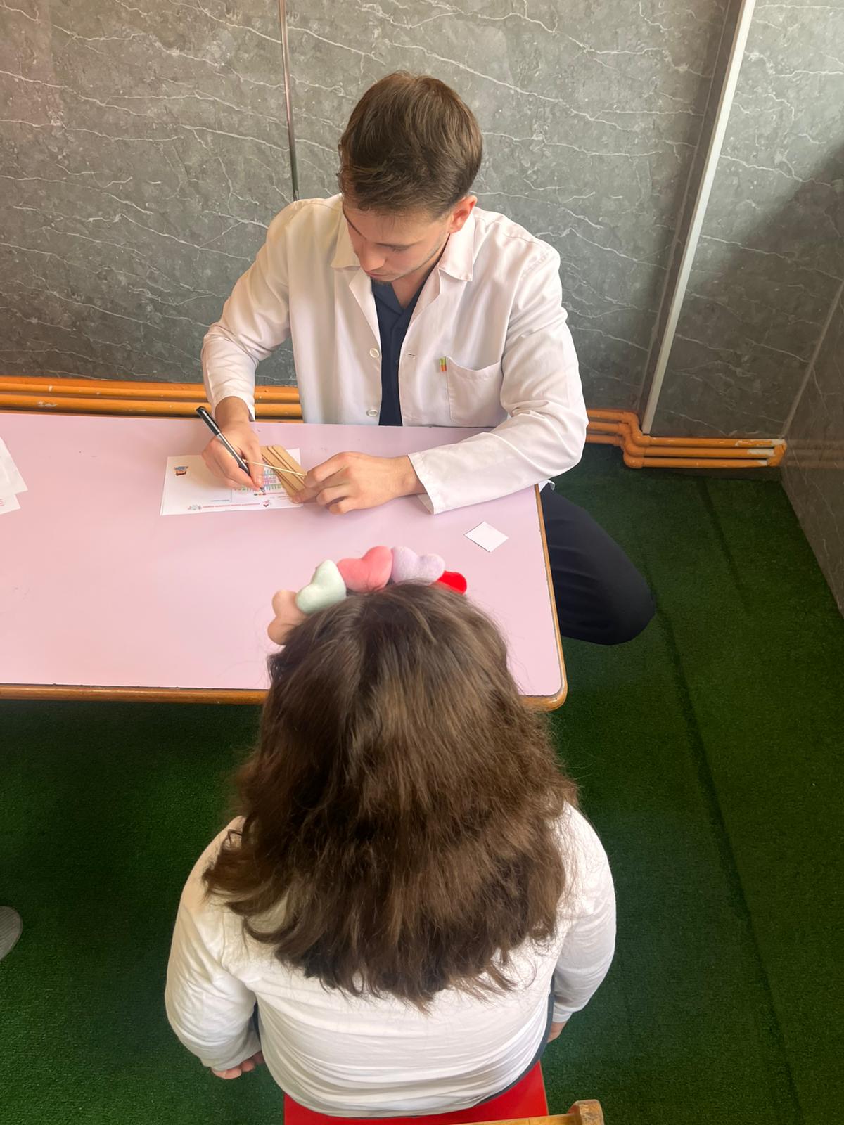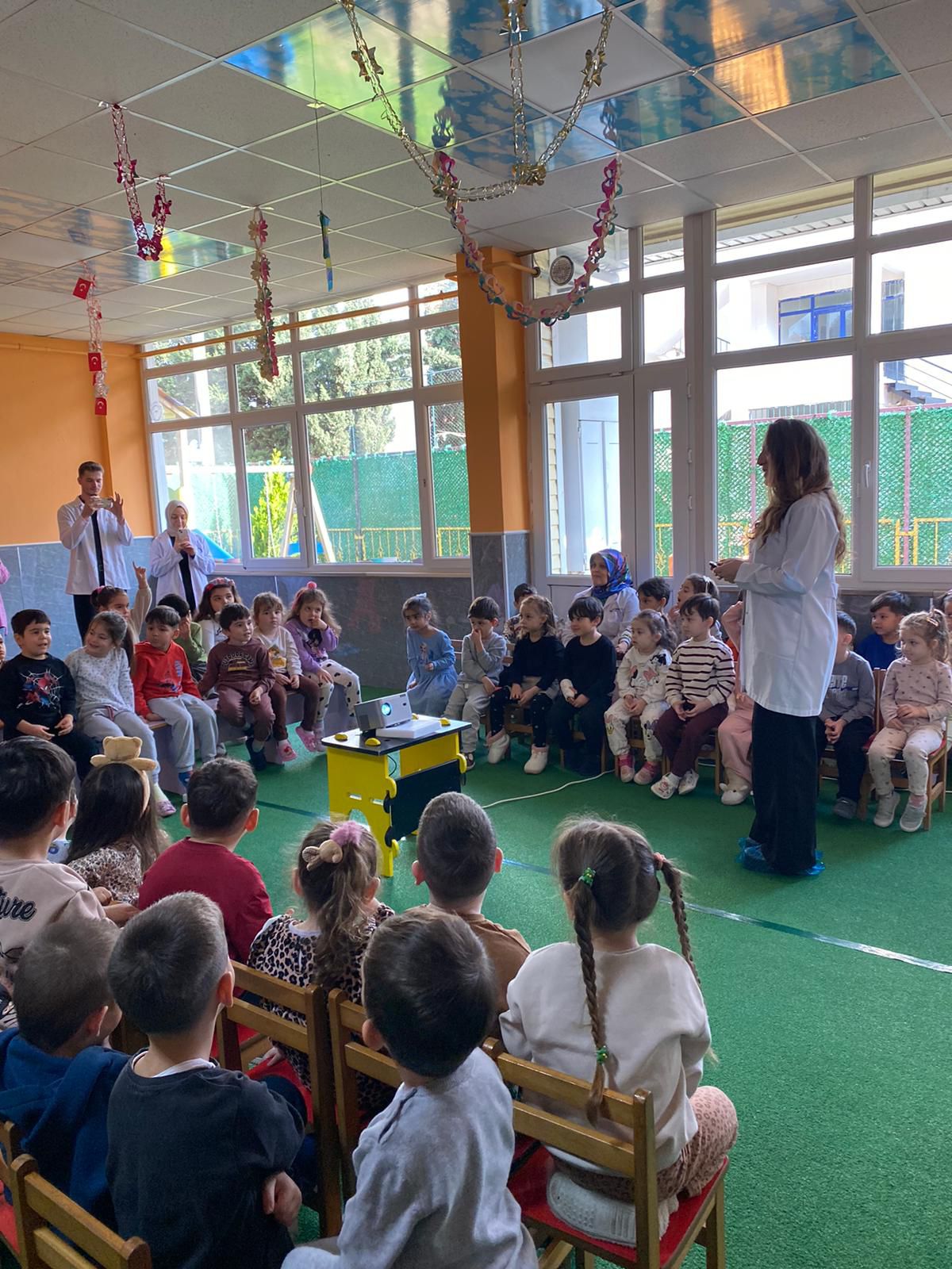 Etkinlik sırasında öğrencilerin ağız hijyeni durumları değerlendirildi; diş fırçalama alışkanlıkları, sağlıklı beslenmenin önemi ve koruyucu diş hekimliği uygulamaları hakkında bilgilendirmeler yapıldı. Çocuklara erken yaşta ağız ve diş sağlığı bilinci kazandırmayı amaçlayan bu çalışma, hem eğitici hem de keyifli bir atmosferde tamamlandı.